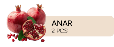 Bananas x 1 dozen | Apples x 6 pcs | Oranges x 6 pcs | Pears x 4 pcs | Pomegranate x 2 pcs | Grapes x 500 g | Kiwi x 4 pcs | Seasonal Fruit x 1 item